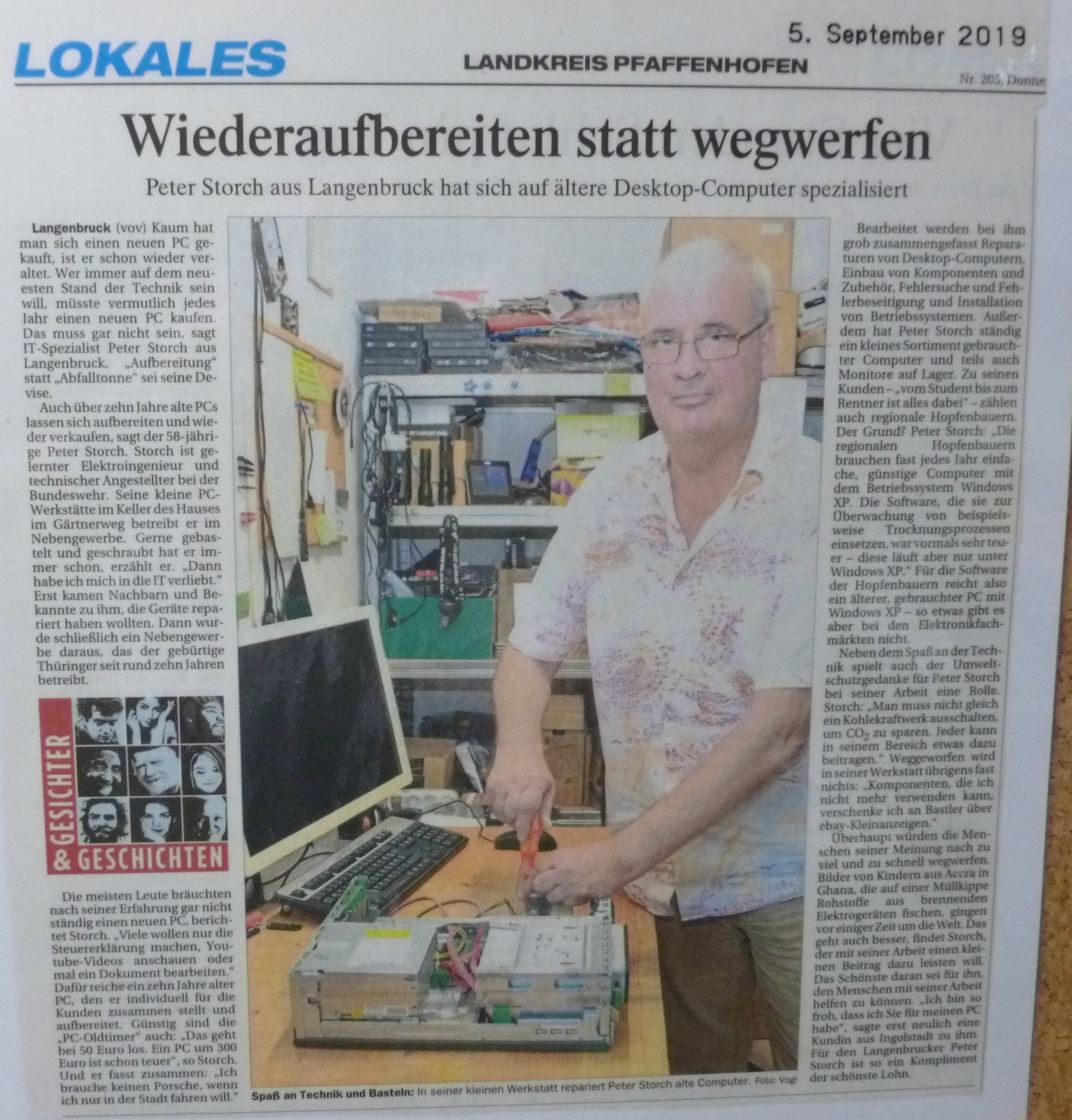 Dem Donaukurier war es im Jahre 2019 ein Artikel wert, über mich und meine Arbeit zu berichten, um auf die Nachhaltigkeit dieser Tätigkeit aufmerksam zu machen.